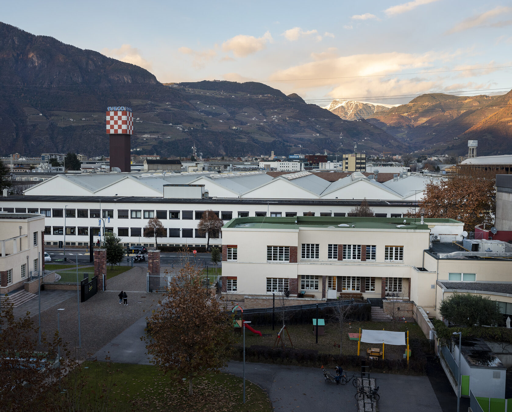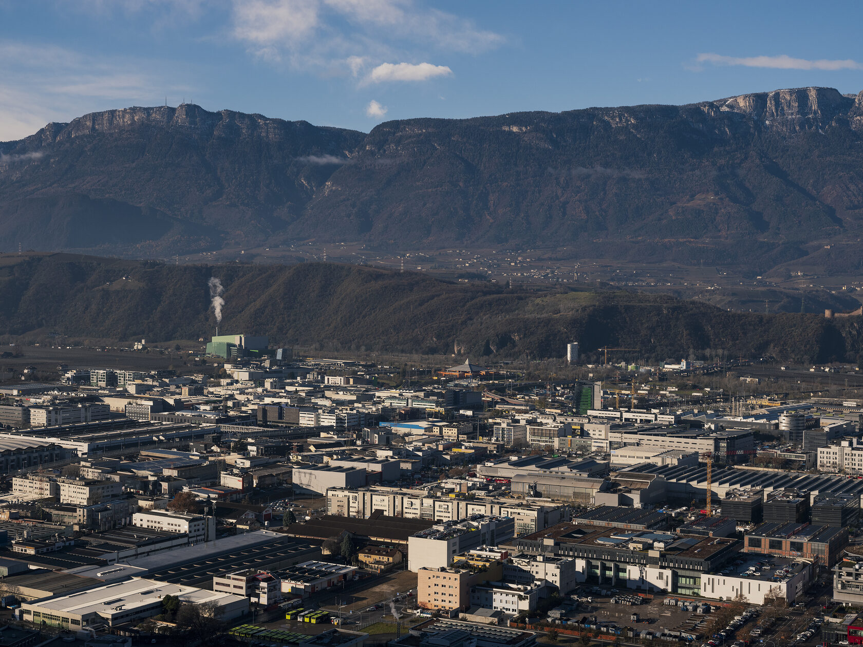 A general view of the Bolzano Industrial Area. Built in the 1930s on the confiscated land and expanded after WWII, it served as a major vehicle of the forced Italianization of South Tyrol. December 2023