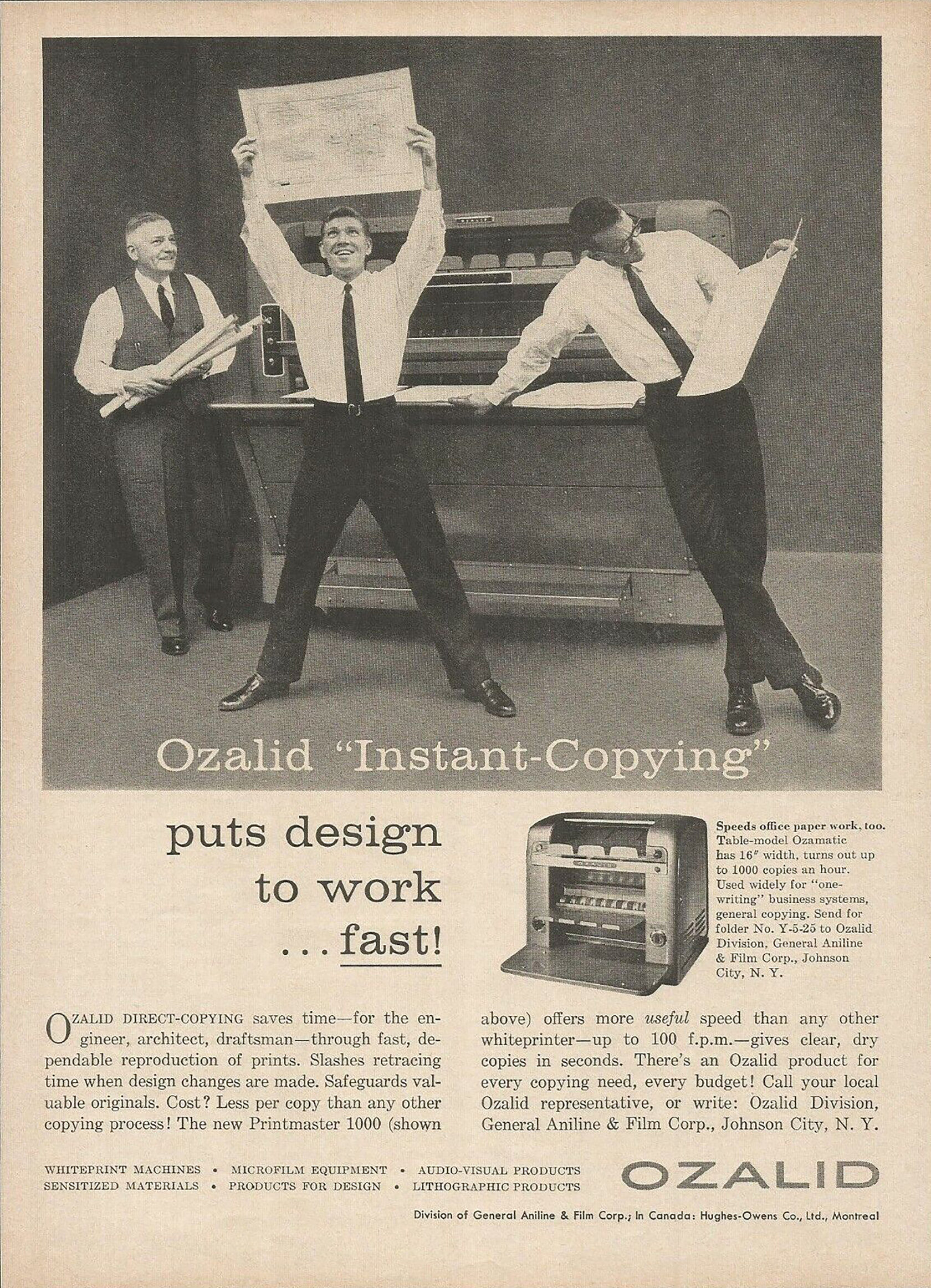 Advertisement for diazo photosensitive paper brand Ozalid which was used for diazotype copying machines, USA, 1959