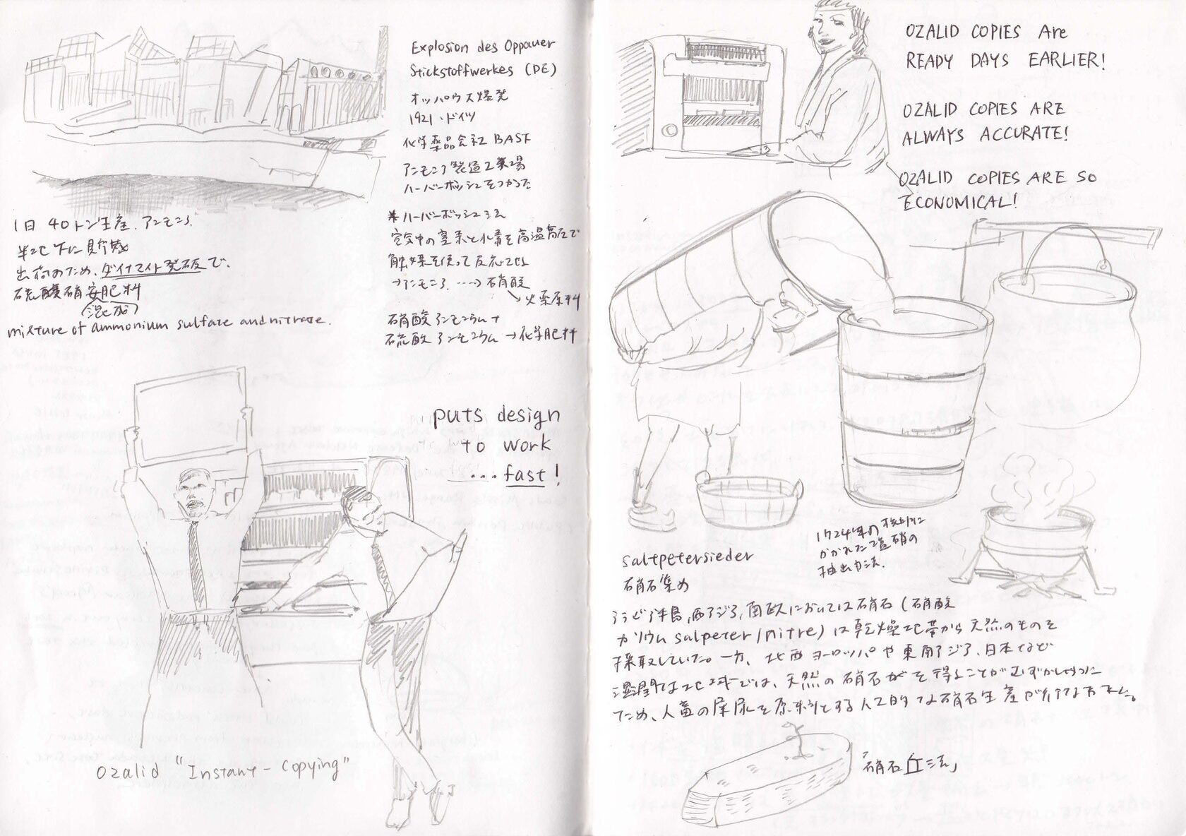 For the work The gift exercise / Invitation 8: Nitrogen – substance of power, which they developed within the framework of the Colonial endurance project, Willimann/Arai have put together various archive images that document the development of the processes involved in the extraction, processing and production of nitrogen compounds over the course of time. Drawing from transdisciplinary research, Willimann/Arai crafted a narrative recounting the history of the element Nitrogen and its entanglement with colonialism, tracing its connections across history, biology, chemistry, and alchemy.