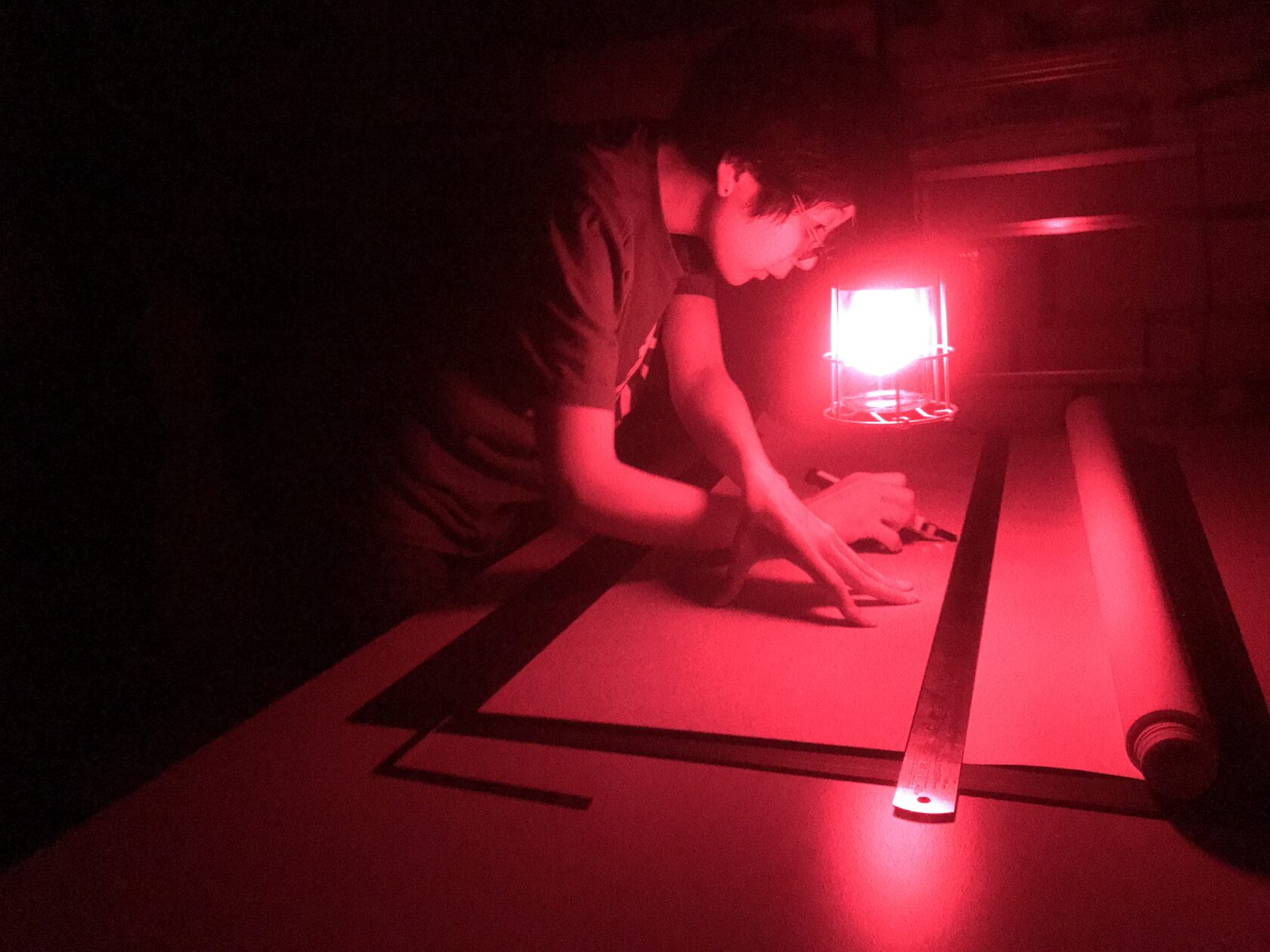 Production process: Preparation of UV-light sensitive Diazo-paper in the darkroom. Photo:Willimann/Arai