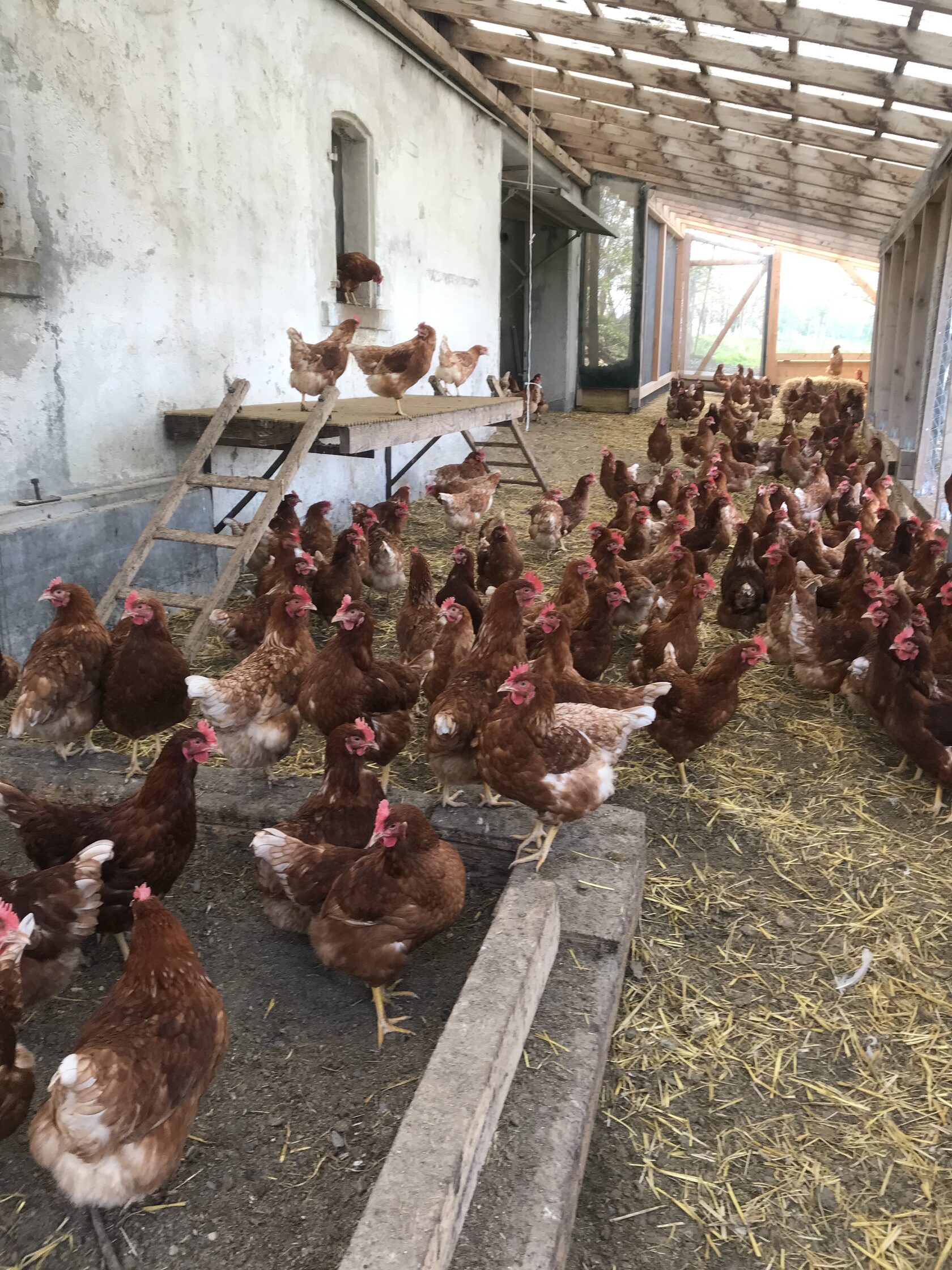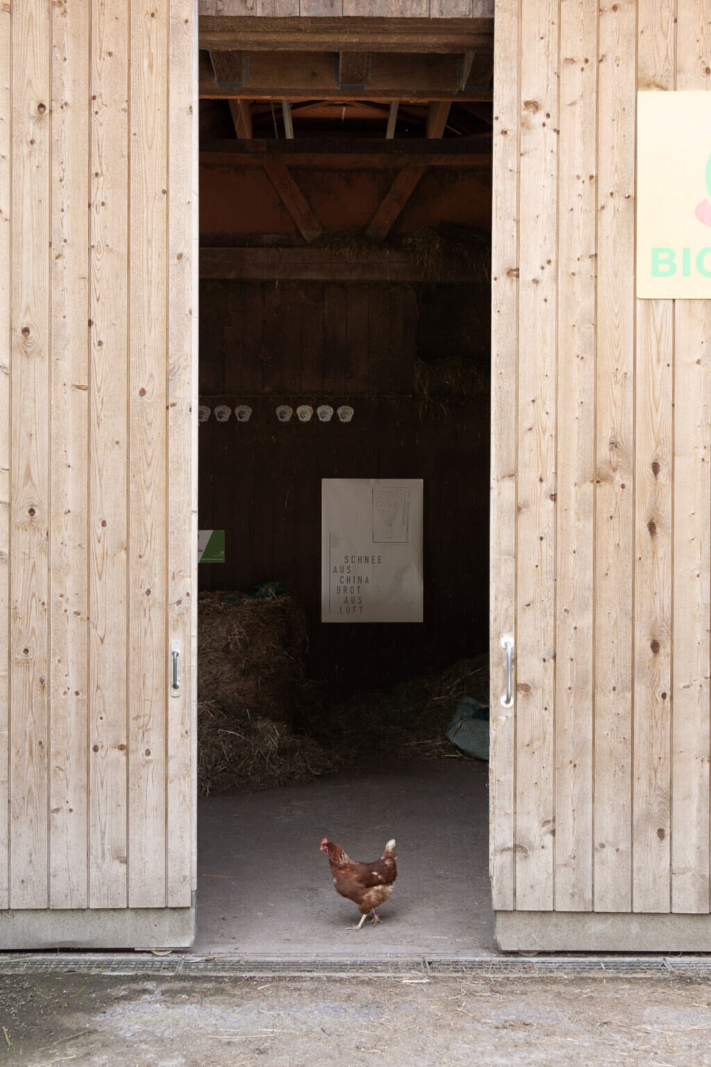 Chicken in the barn at night, Hof Blum/Froh Ussicht in Samstagern/CH. Photo: Willimann/Arai