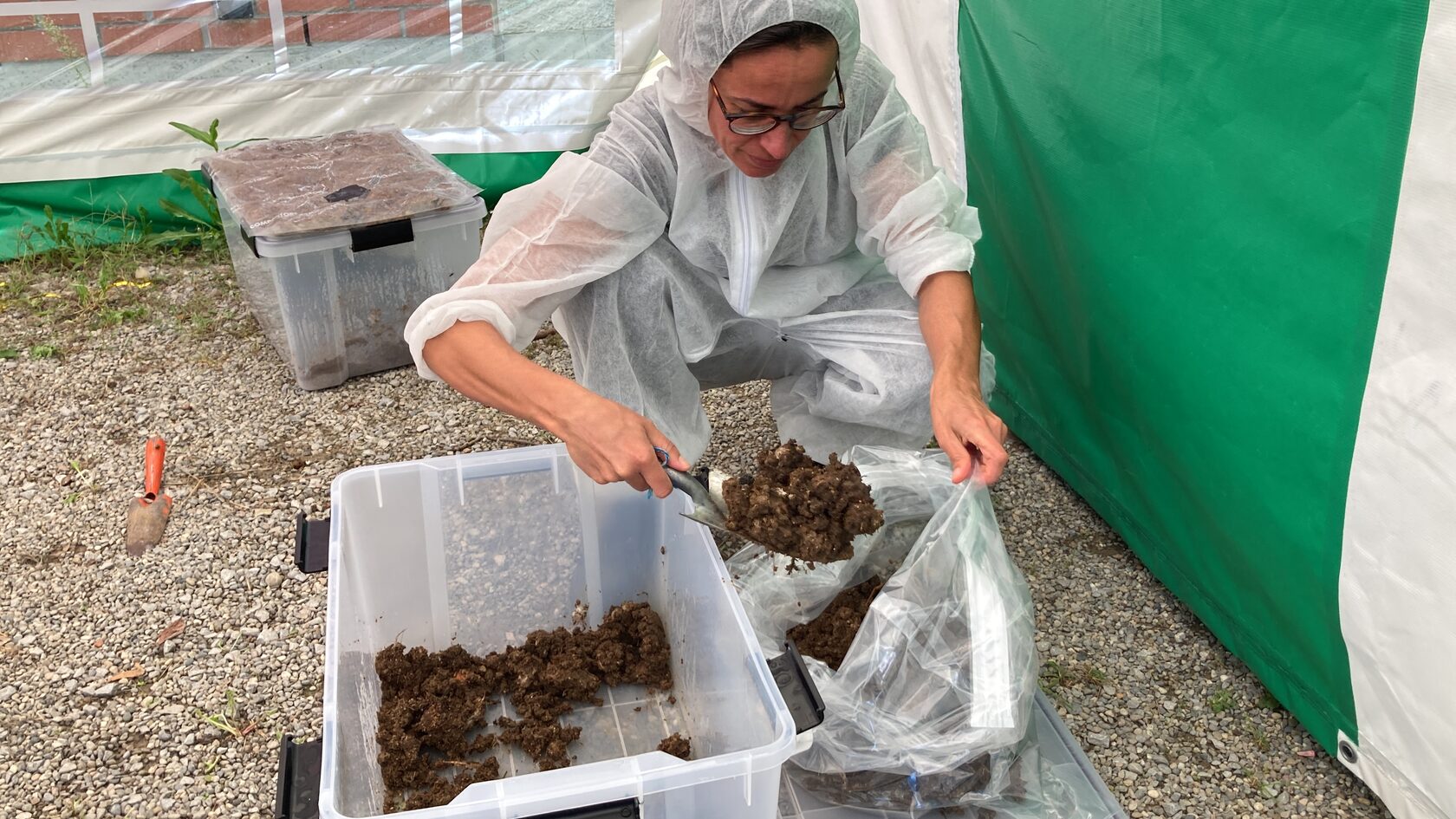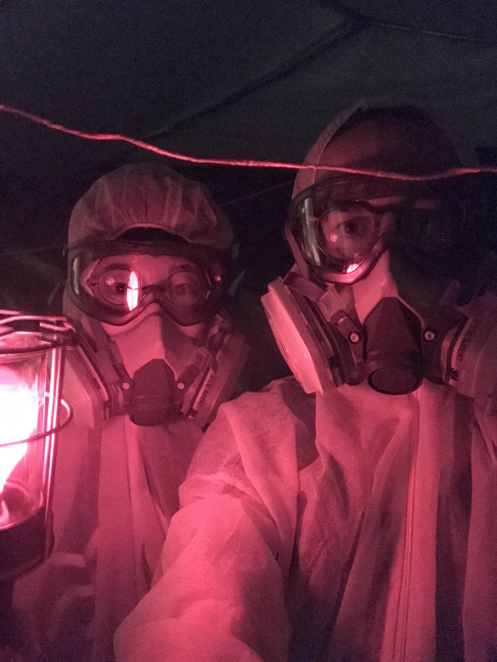 Production process: Willimann/Arai with gas masks and protective suit. Photo: Willimann/Arai
