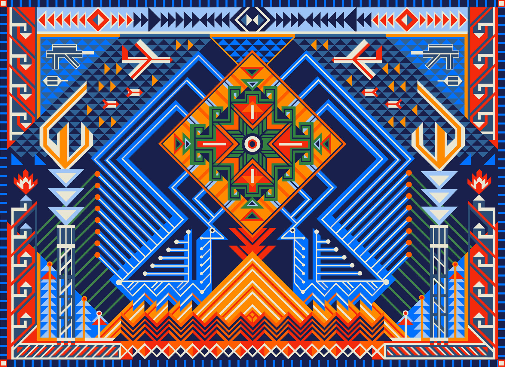 In Persian mythology, the Simurgh is a benevolent, phoenix-like creature that is depicted as a winged, multi-colored bird of massive proportions. It is associated with fire and is said to dwell in the highest reaches of the cosmic tree of life, representing wisdom, strength, and immortality. Using the image of two Simurgh birds locked in combat can symbolise the epic struggle between two mighty powers, each representing a different ideological or geopolitical force, engaging in a fierce battle for dominance over the precious and combustible resource of crude oil.